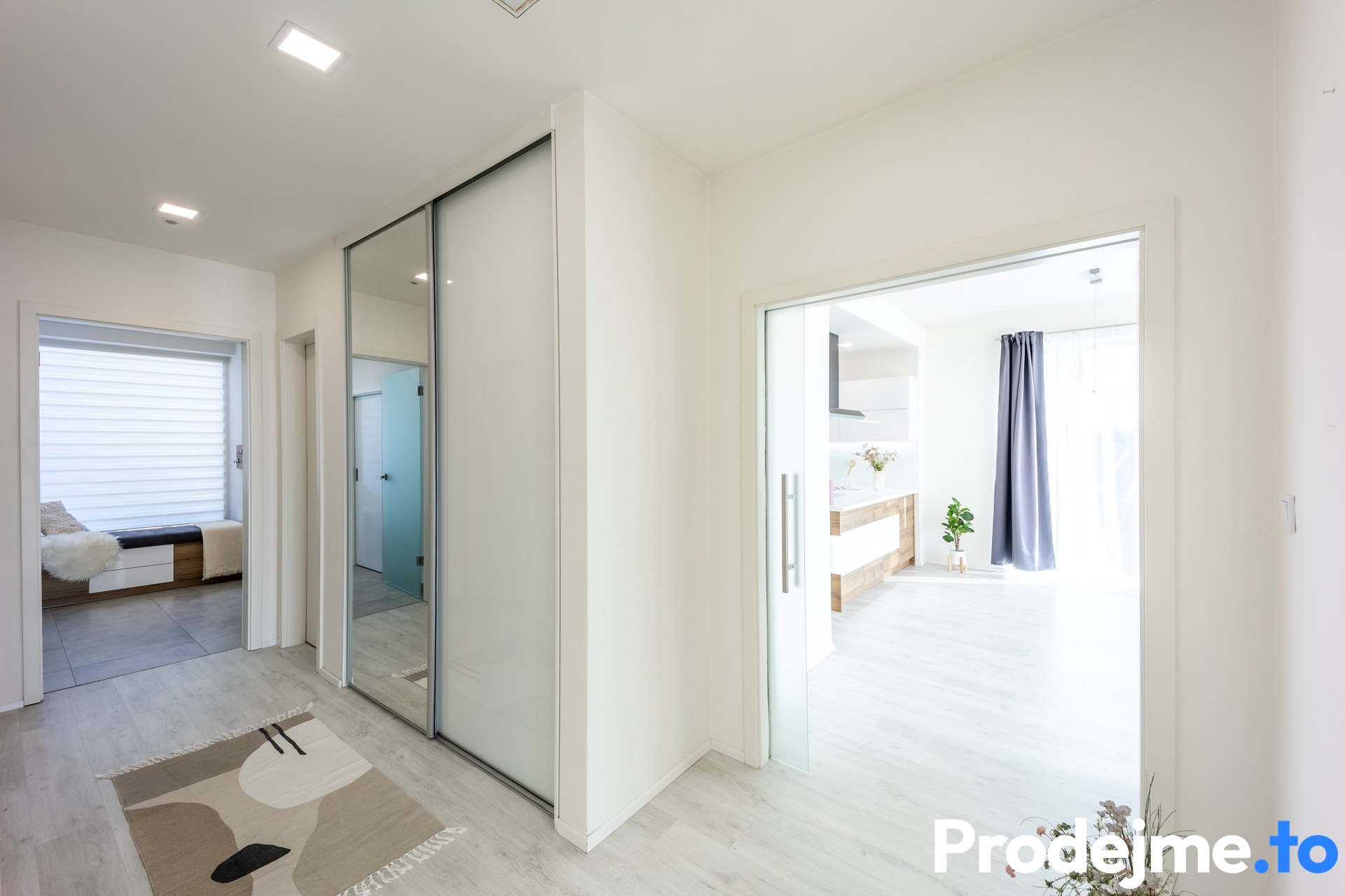 Při vstupu do domu vás přivítá předsíň s navazující širokou chodbou, odkud jsou vstupy do jednotlivých místností. Prostorná ložnice s vlastní šatnou je chytře umístěna v severní části domu a díky oddělení od ostatních pokojů nabízí dostatek klidu a soukromí. Technická místnost patří elektrickému kotli a rozvodům podlahového topení pro celý dům.