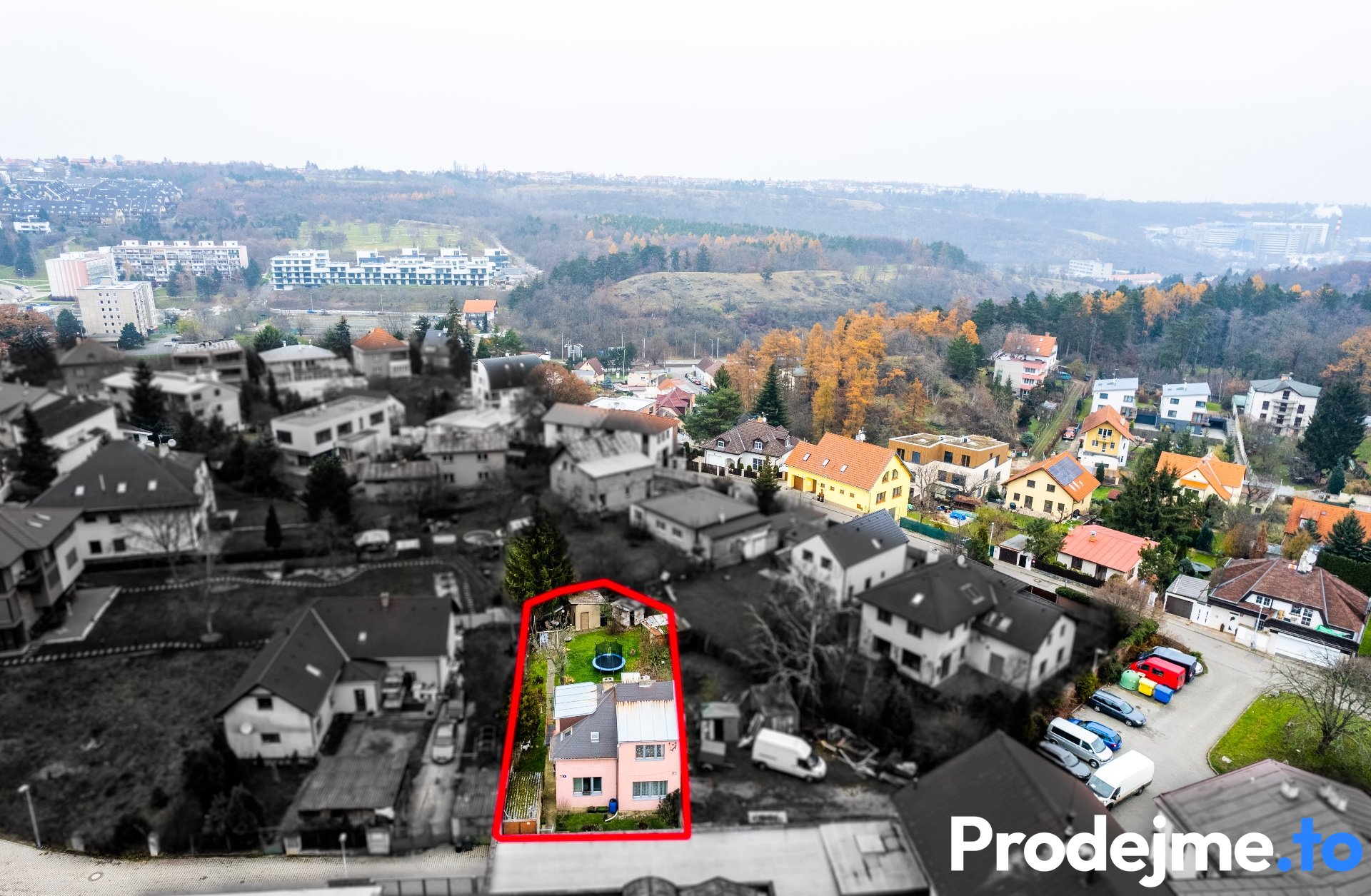 Nemovitost leží ve slepé ulici Pod viaduktem. Ta je dokonale tichá a najdete v ní rodinné domy. Celé sousedství obklopují lesy, které potvrzují skvělou poklidnou atmosféru této lokality a dělají z ní ideální místo pro život v hlavním městě.