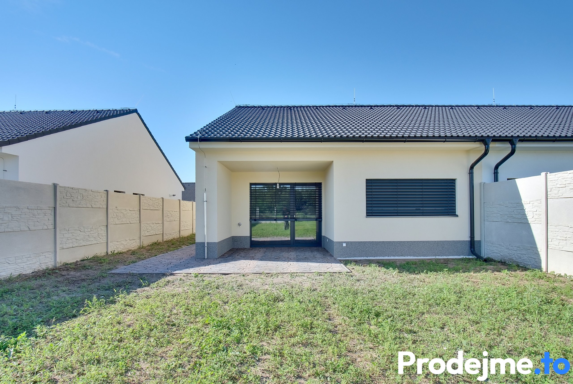 Středobodem rodinného života je prostorný obývací pokoj s kuchyňským koutem a francouzskými okny na terasu. Díky nim je krásně prosvětlený a propojuje dům s dalšími místnostmi. Najdete zde ložnici orientovanou do zahrady, která poskytuje dokonalé soukromí a klid po náročných dnech, velký dětský pokoj, koupelnu s vanou, sprchovým koutem i toaletou a technickou místnost přiléhající k předsíni. Milovníky venkovního posezení potěší krytá terasa se zámkovou dlažbou. Její celoroční využití umožňuje vyvedená elektřina i voda v nezámrzném systému. Nad domem je půda, která poskytuje dostatek místo pro uložení všech vašich nezbytností.