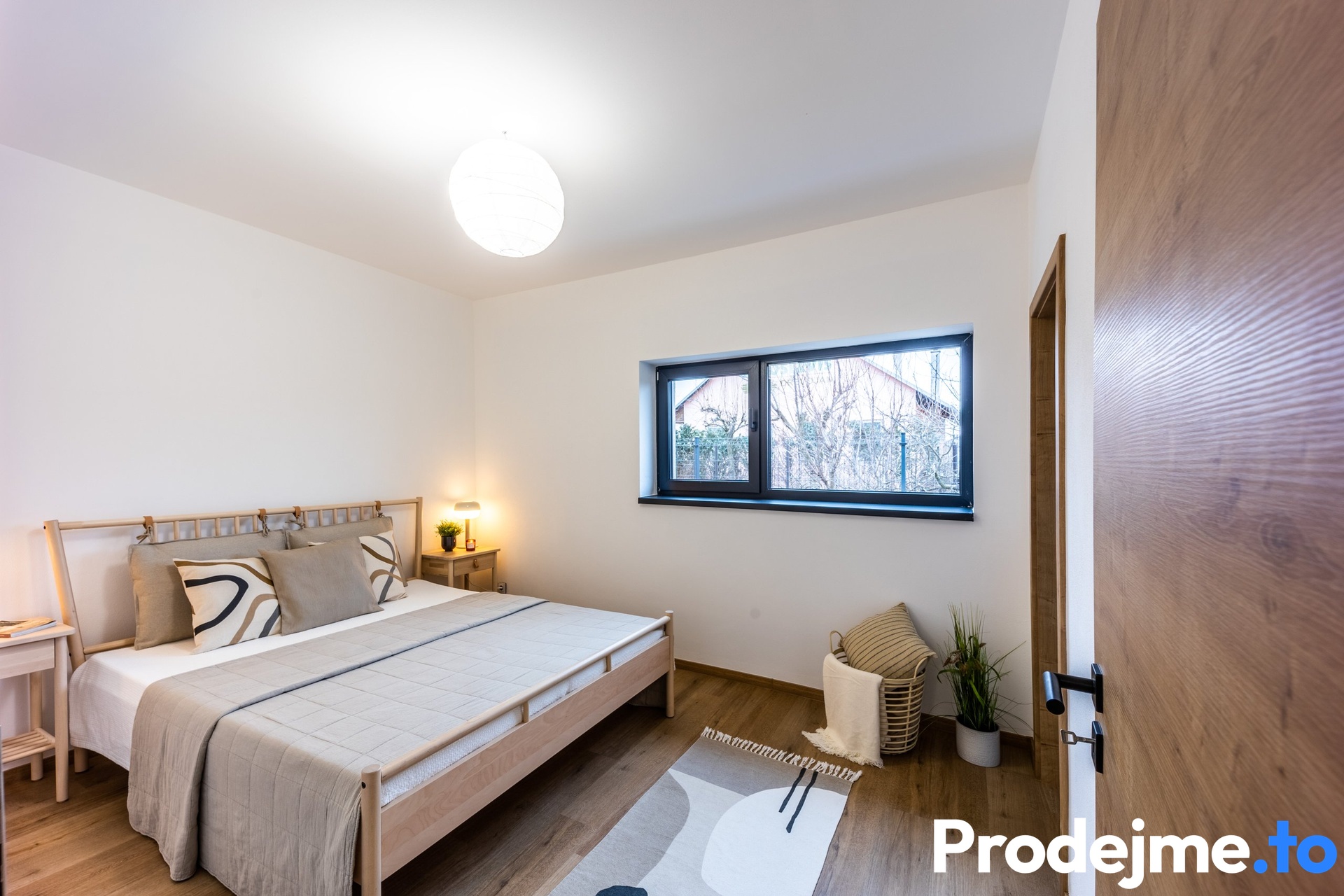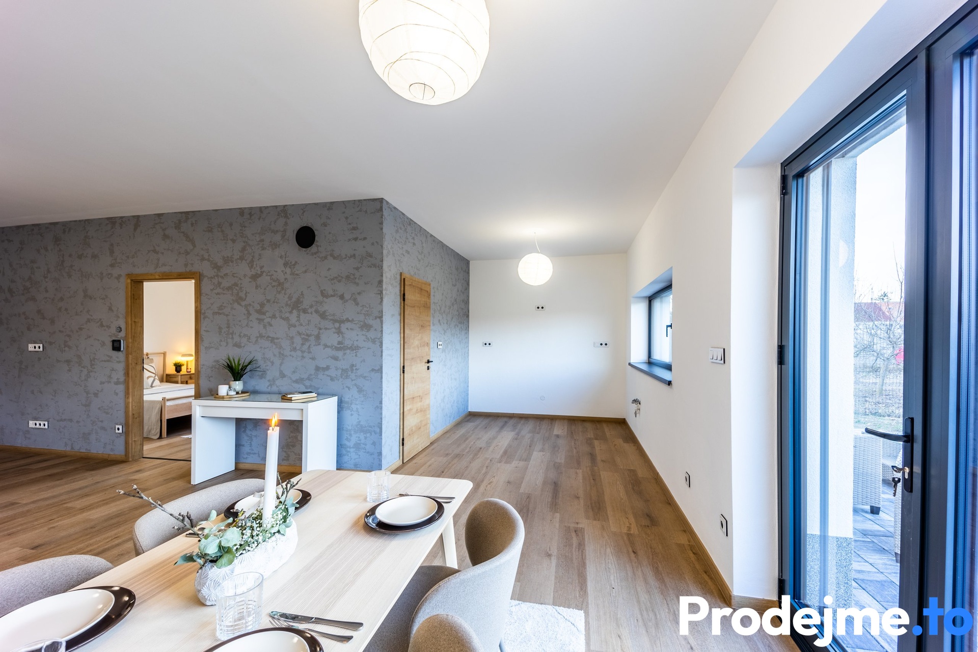 S celkovými 45 m2 kraluje všem místnostem obývací pokoj s kuchyňským koutem. Je prakticky řešený do tvaru písmene L a odděluje tak obytnou část od kuchyně. Ta je připravená na velkou kuchyňskou linku a má vstup do spíže. Chvíle při vaření vám jistě zpříjemní výhled do zahrady. Díky francouzským oknům je celá místnost krásně prosvětlená a nabízí zároveň pohodlný vstup na terasu o velikosti 34 m2. Možnost jejího celoročního využití umožňuje vyvedená elektřina i voda v nezámrzném systému. Z obývacího pokoje se dostanete i do poslední místnosti v domě - ložnice. Ta je velmi útulná a poskytuje dostatek soukromí a jako bonus vlastní šatnu.
